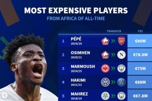 非洲球员历史转会费榜:佩佩压奥斯梅恩&马尔穆什居首,库杜斯第6